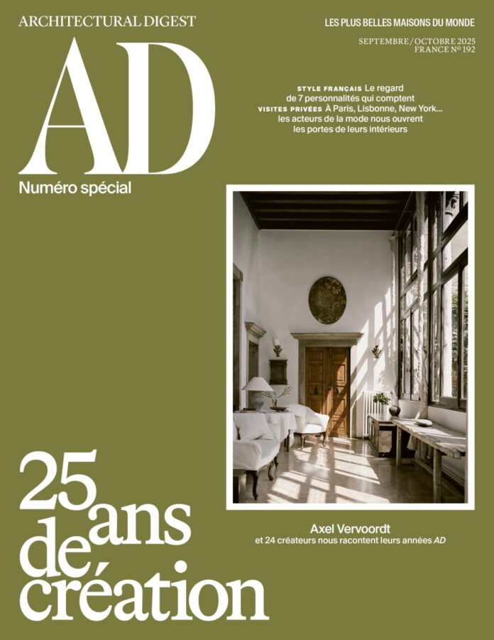 Pour célébrer cet anniversaire, AD a réuni 25 personnalités qui ont marqué son histoire et dont les témoignages composent une fresque unique de la création contemporaine. De John Pawson à Philippe Starck, de Ralph Lauren à Giorgio Armani, en passant par Pierre Yovanovitch, Axel Vervoordt, Jacques Garcia, India Mahdavi, Sarah Moon, Kelly Wearstler, Rick Owens, Vincenzo De Cotiis, Charles Zana, Dimorestudio, Studio KO, Vincent Darré ou encore François Halard, chacun revient sur son « année AD » et la trace que le magazine a laissée dans son parcours. À travers ces regards croisés, le lecteur retrouve l’esprit pionnier et la richesse d’un quart de siècle de création. Dans ce numéro, AD propose également de réfléchir à l’identité et à l’élégance hexagonale à travers sept personnalités invitées à définir le style français. L’architecte Jean-Michel Wilmotte, la cheffe Anne-Sophie Pic, le galeriste Kamel Mennour, la directrice artistique Cordelia de Castellane, l’artiste Jean-Michel Othoniel, la designeuse Nathalie Du Pasquier et le créateur Christian Louboutin livrent leur interprétation sensible et singulière de ce qui fait l’essence d’un art de vivre à la française.