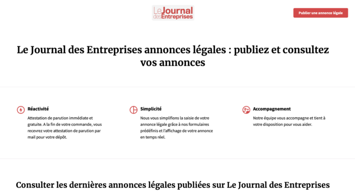 Le Journal des entreprises est habilité depuis le 1er janvier à recevoir sur son site des annonces judiciaires et légales dans les départements de Paris et de la Loire-Atlantique. Fruit d’un partenariat avec le service spécialisé du groupe les Echos-le Parisien, sa plateforme, qui ouvre le 1er mars, permet la publication d’annonces légales sur l’ensemble des supports habilités en France métropolitaine et ultramarine, que ce soit directement dans les départements de Paris et de la Loire-Atlantique, pour lesquels Lejournaldesentreprises.com est habilité, et dans les 32 départements couverts par les Echos et le Parisien. Au-delà d’un service complémentaire très utile pour ses abonnés et sa communauté (avec composition assistée des annonces, attestation de parution immédiate et gratuite, souplesse de facturation et paiement sécurisé par CB), cet outil constitue surtout pour l’éditeur une vraie manne financière potentielle, et un relais de croissance non négligeable.