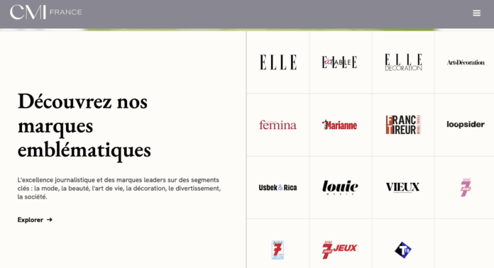 En quelques années, le groupe CMI France aura bien changé de visage. Créé en 2019 par plusieurs rachats successifs, il a multiplié au fil des ans les cessions de titres, des rachats ciblés et même des lancements (Franc-tireur, Vieux et T18) pour « recentrer son activité autour d’un portefeuille de marques plus cohérent, afin d’en accélérer le développement éditorial et numérique, tout en soutenant le lancement de nouvelles marques et de nouveaux projets », explique-t-on en interne. Le groupe, présidé par Valérie Salomon, se déploie également à travers des médias innovants comme Loopsider, Louie média et Usbek & Rica. Les ventes, cette année, d’Ici Paris, de France dimanche, de Télé 7 jours et Télé 7 jeux traduisent une volonté, après la cession de Public, de sortir d’une presse populaire et grand public, au profit de titres plus haut de gamme, comme Elle, Elle décoration, Elle à table ou Art & décoration. S’il a tenté de se délester de Marianne, il a finalement choisi de le conserver en son sein après le refus de la rédaction d’avaliser le choix de Pierre-Edouard Stérin comme nouveau propriétaire.