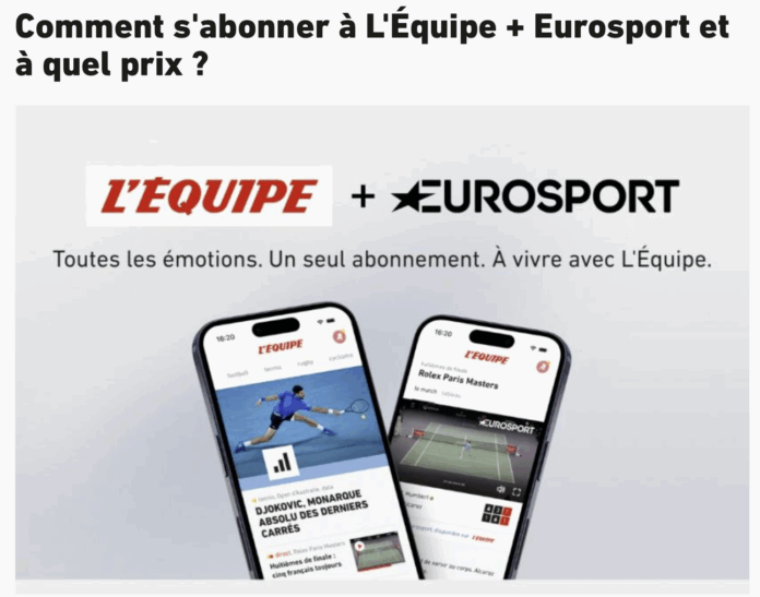 Concrètement, les abonnés à l’offre « l’Equipe + Eurosport » pourront regarder les chaînes Eurosport directement sur le site et l’application de l’Equipe (mobile, tablette, TV) tout en profitant d’un accès illimité à l’ensemble des contenus de la marque. L’abonnement coûte 10,99 euros par mois avec un engagement d’un an, ou 14,99 euros par mois sans engagement.